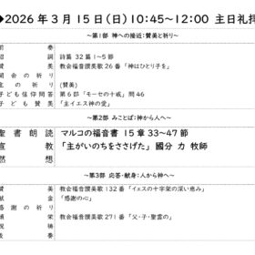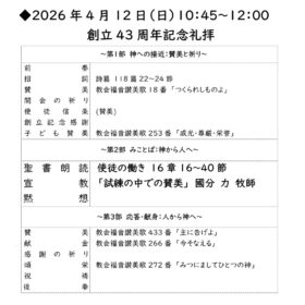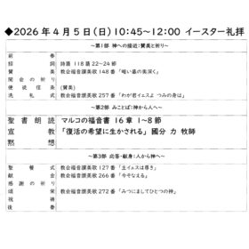 いずれも、どなたでもおいでになれます。お一人でも、お気軽においでください。主日礼拝 日曜日 午前 10:45~12:00