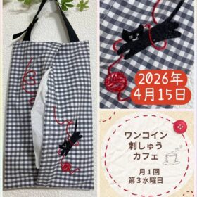 ワンコイン刺しゅうカフェ 第3水曜日 午後 1:30~3:30(要予約)