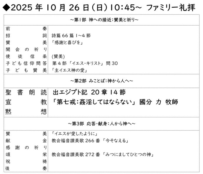2025年10月26日 礼拝案内