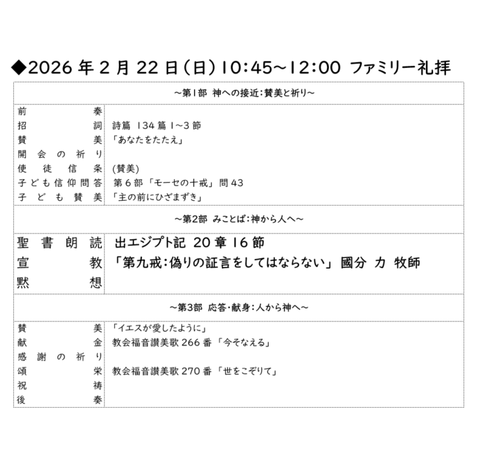 2026年2月22日 礼拝案内