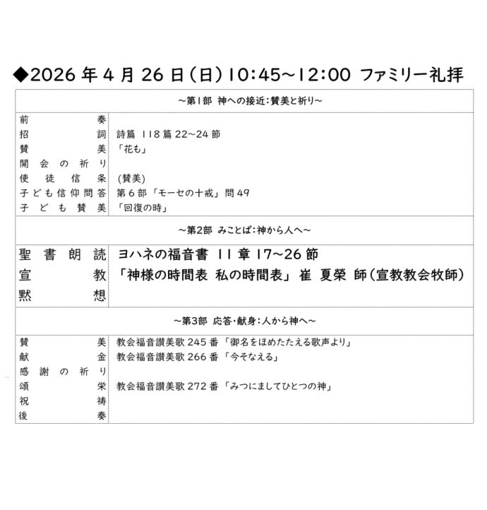 2026年4月26日 礼拝案内