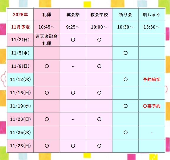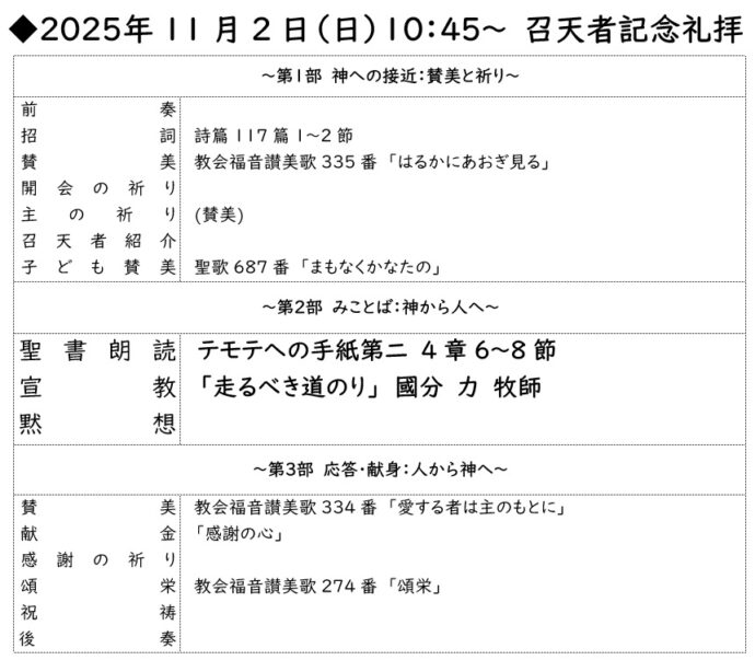2025年11月2日 礼拝案内