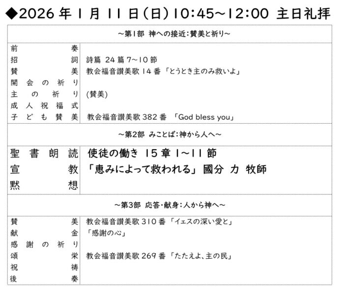 (2025年12月31日13:20更新) 2026年1月の予定は写真の通りです。初めての方もお気軽においでください。各集会についてはこちらの …続きを読む